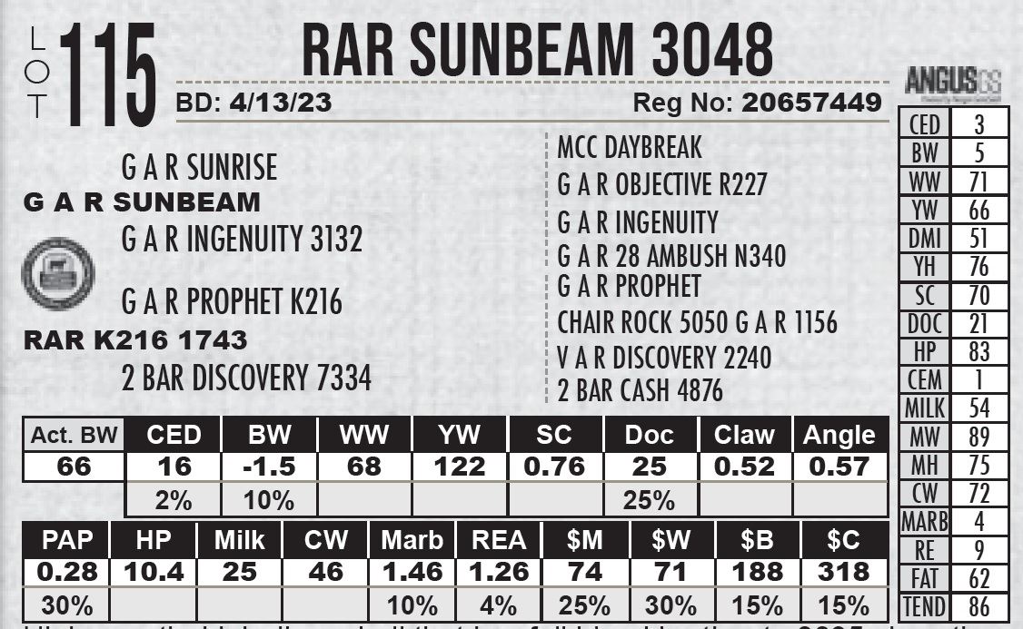 Heifer bull with high carcass merit and exceptional Calving Ease Maternal.