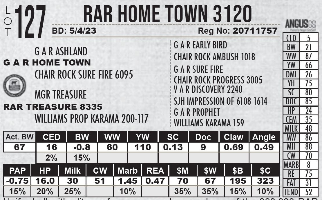 Heifer bull with high maternal, minus PAP EPD, and high marbling.