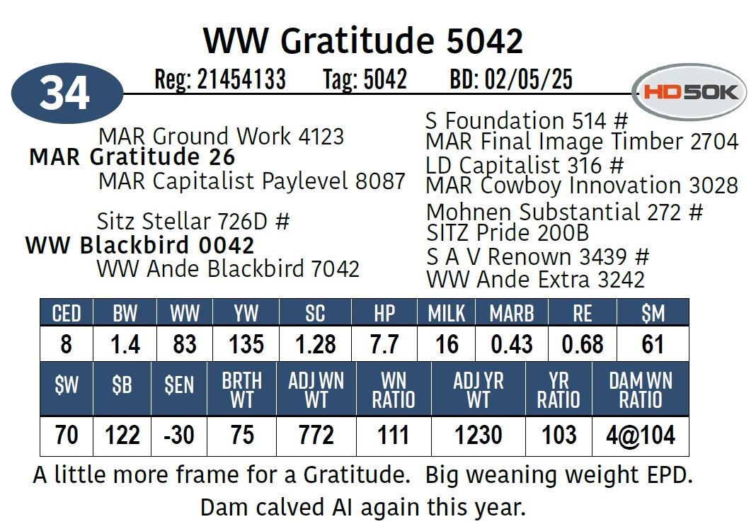 little more frame for a Gratitude. Big weaning weight EPD.