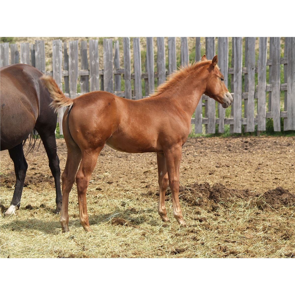 This colt is quite a stand out. He is a combination of some of the best cow bred horses and good old solid running horses. He has great bone, solid feet and athletic moves that would make him a great lead horse, steer wrestling or barrel racing prosect. If you want a great one to compete on that will last, this ones for you!