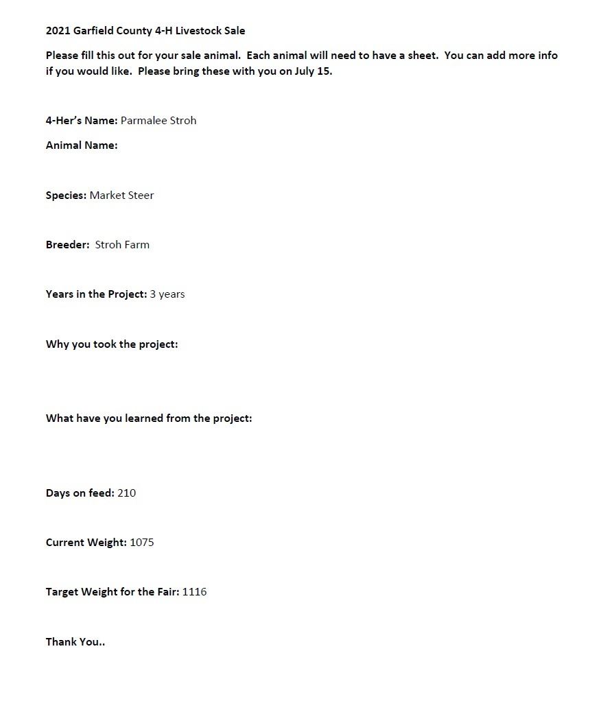 ANIMALS WILL BE SOLD $ PER POUND, BID PRICE MULTIPLIED BY WEIGHT!