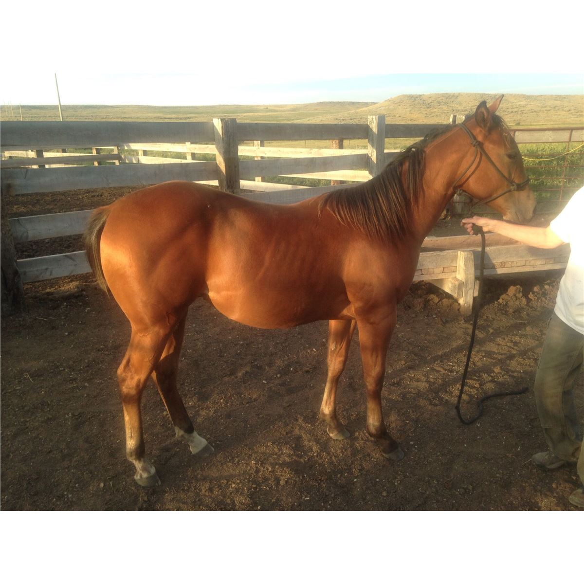 Stella is a beautiful bay filly that keeps getting better with age. She has been raised on the ranch and is easy to catch. Both of the colts out of her dam have been great to work with. A three year old half brother had 90 days of training and didn't buck at all. On top of disposition this filly is out of an own son of Paddys Irish Whisky. Call (406) 428-2156 with questions.