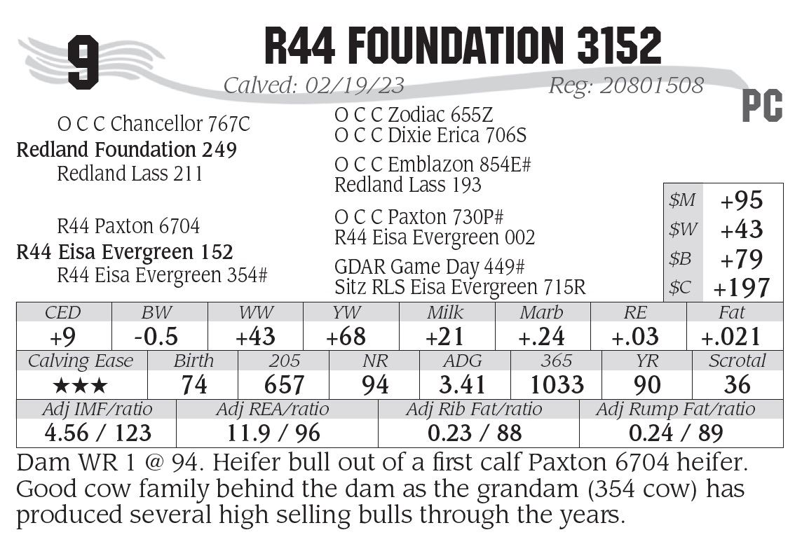 Dam WR 1 @ 94. Heifer bull out of a first calf Paxton 6704 heifer.