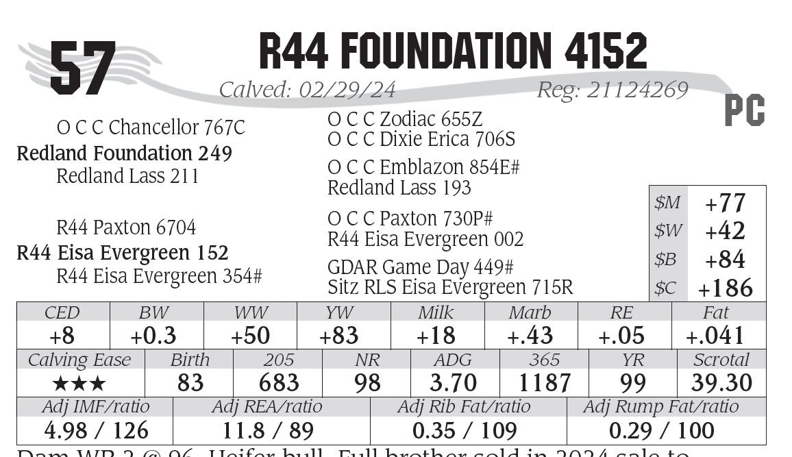 Dam WR 2 @ 96. Heifer bull. Full brother sold in 2024 sale to