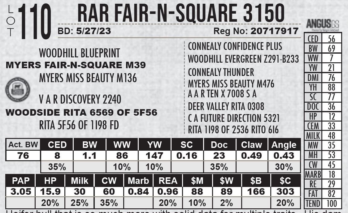 Stout Fair N Square son from the donor dam of the $87,000 RAR Resolution that topped the 2020 Rooney bull sale, with an elite level of $Maternal.