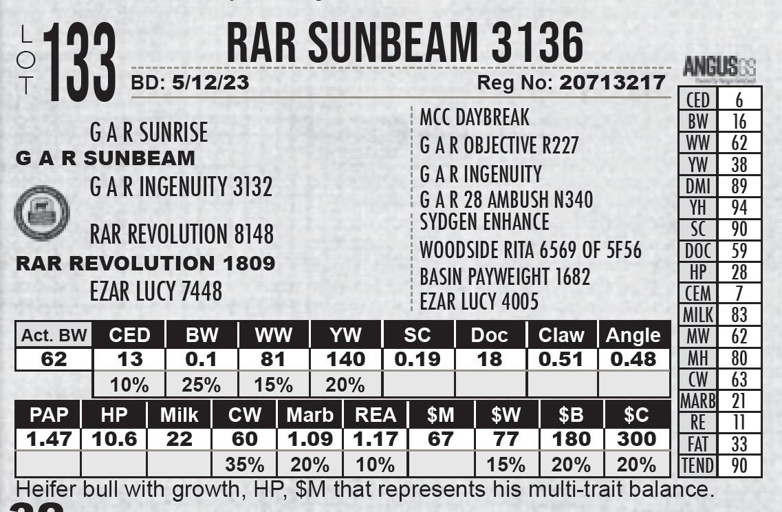 Heifer bull with high growth and balanced trait EPD data.