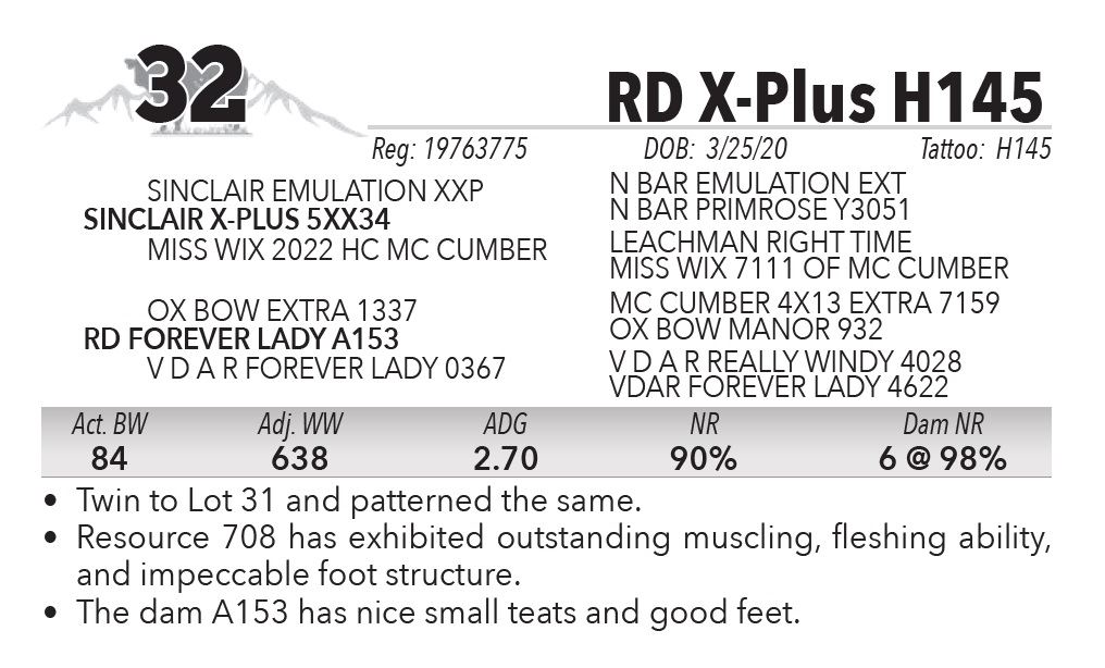 • Resource 708 has exhibited outstanding muscling, fleshing ability,