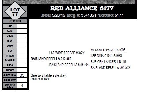 Sire is K2 Blazin Alliance 725 1013. EPD's are HB 88, GM 51, CED 5,