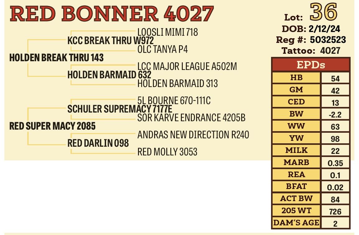 registered cattle. Bring your trailer on sale day and get $50 off per bull.