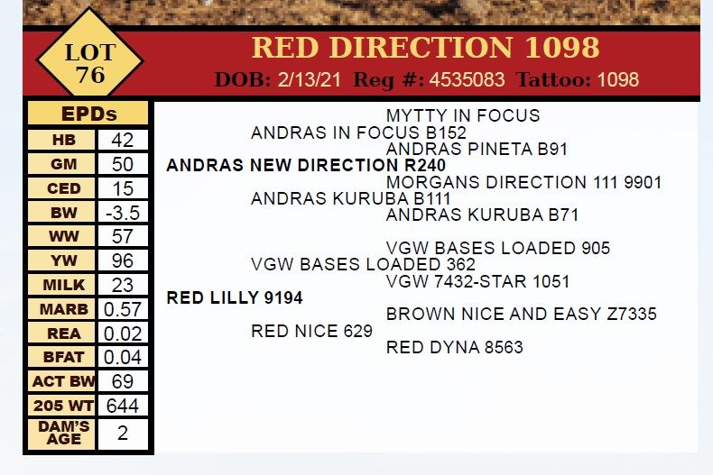 registered cattle. Bring your trailer on sale day and get $50 off per bull.