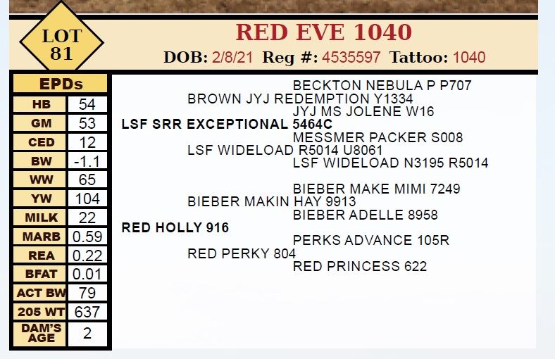 registered cattle. Bring your trailer on sale day and get $50 off per bull.