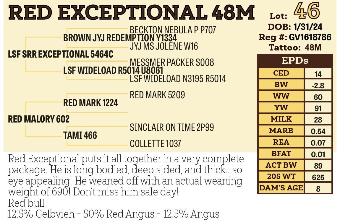 registered cattle. Bring your trailer on sale day and get $50 off per bull.