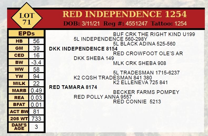 registered cattle. Bring your trailer on sale day and get $50 off per bull.