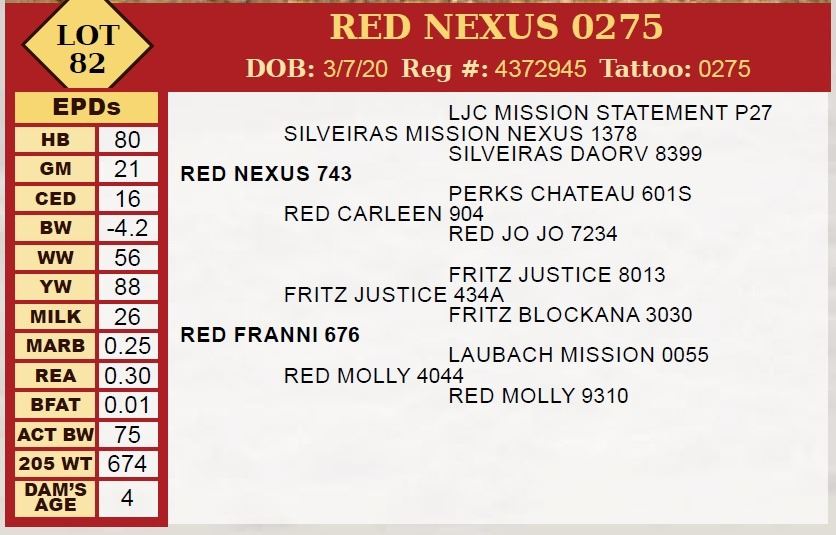 registered cattle. Bring your trailer on sale day and get $50 off per bull.