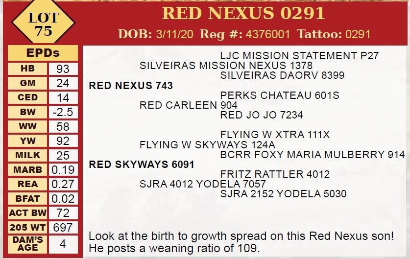 registered cattle. Bring your trailer on sale day and get $50 off per bull.