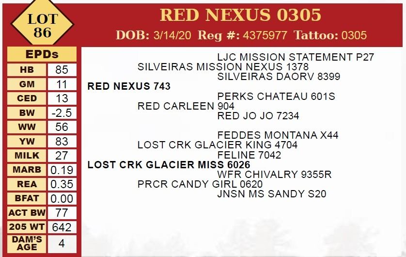 registered cattle. Bring your trailer on sale day and get $50 off per bull.