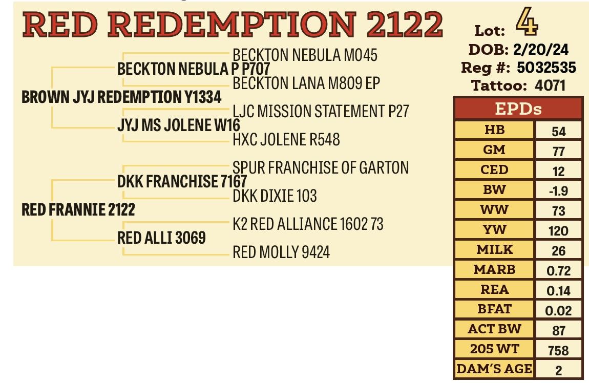 registered cattle. Bring your trailer on sale day and get $50 off per bull.