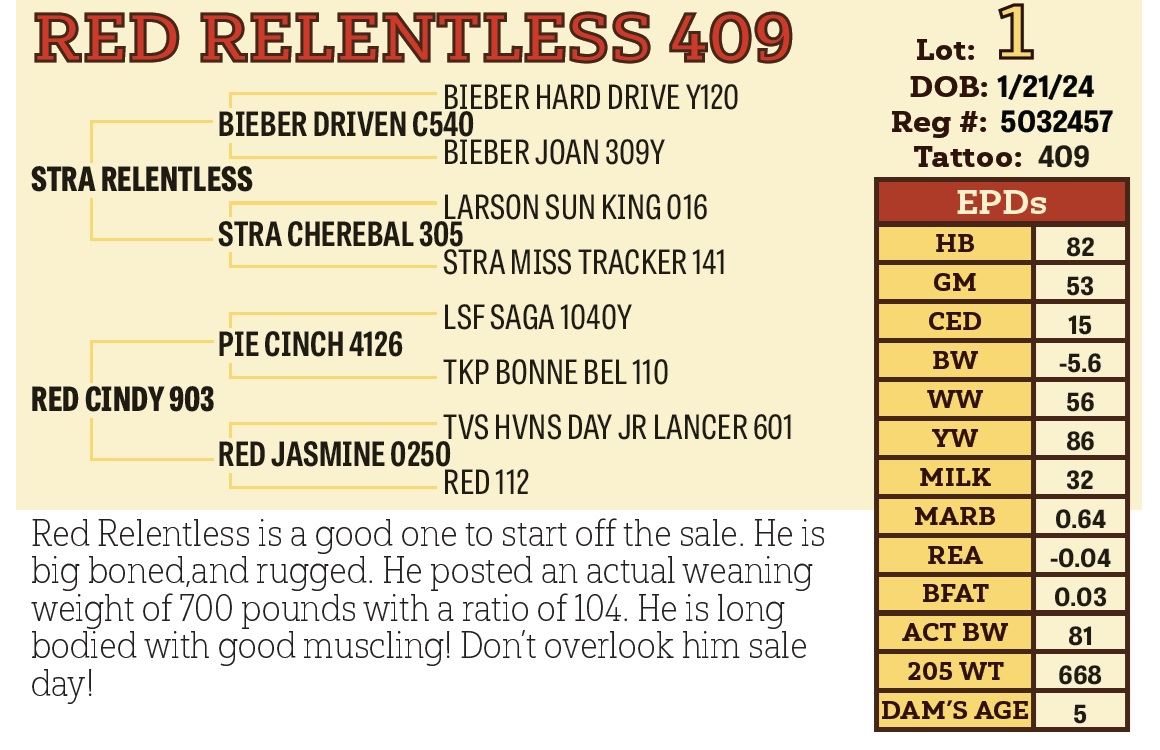 registered cattle. Bring your trailer on sale day and get $50 off per bull.