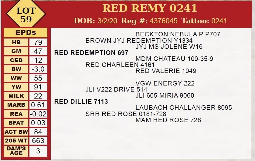registered cattle. Bring your trailer on sale day and get $50 off per bull.