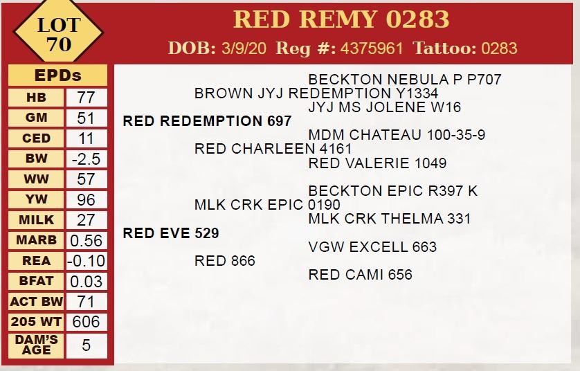 registered cattle. Bring your trailer on sale day and get $50 off per bull.