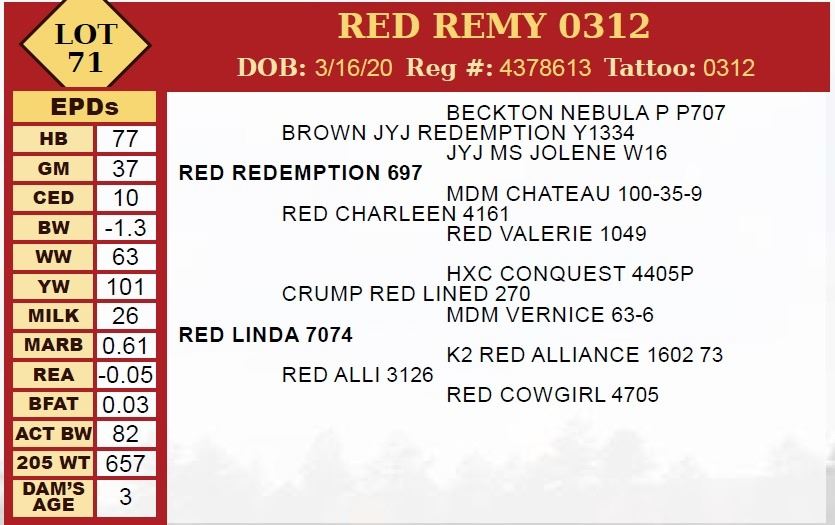 registered cattle. Bring your trailer on sale day and get $50 off per bull.