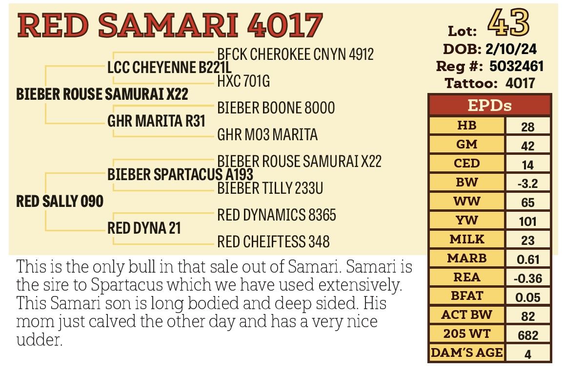 registered cattle. Bring your trailer on sale day and get $50 off per bull.