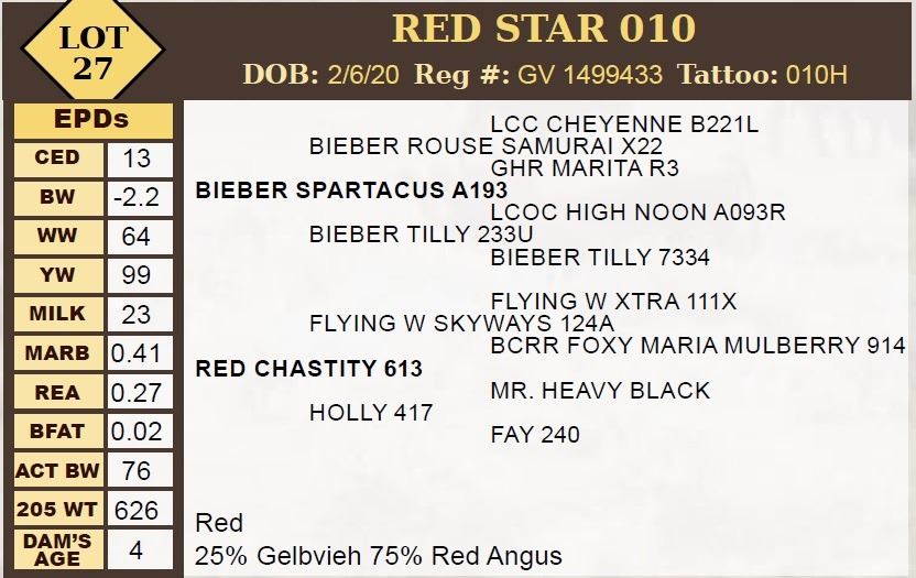 registered cattle. Bring your trailer on sale day and get $50 off per bull.