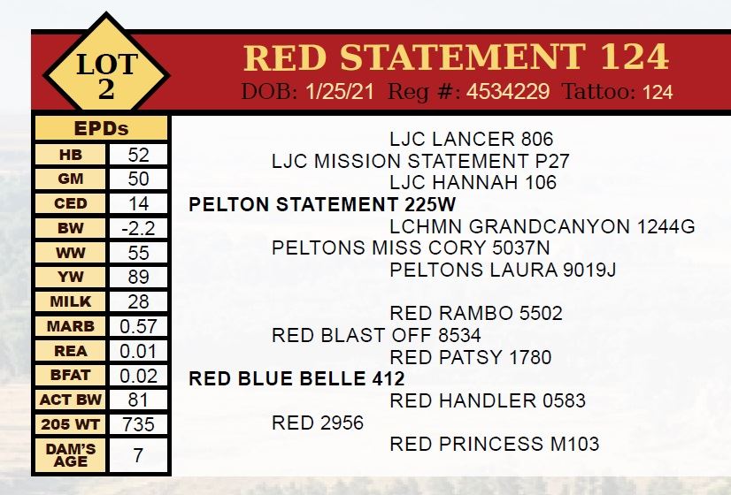 registered cattle. Bring your trailer on sale day and get $50 off per bull.