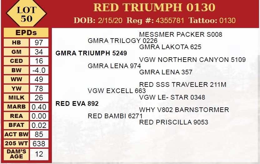 registered cattle. Bring your trailer on sale day and get $50 off per bull.