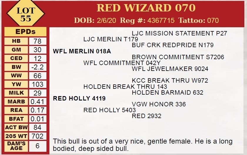 registered cattle. Bring your trailer on sale day and get $50 off per bull.
