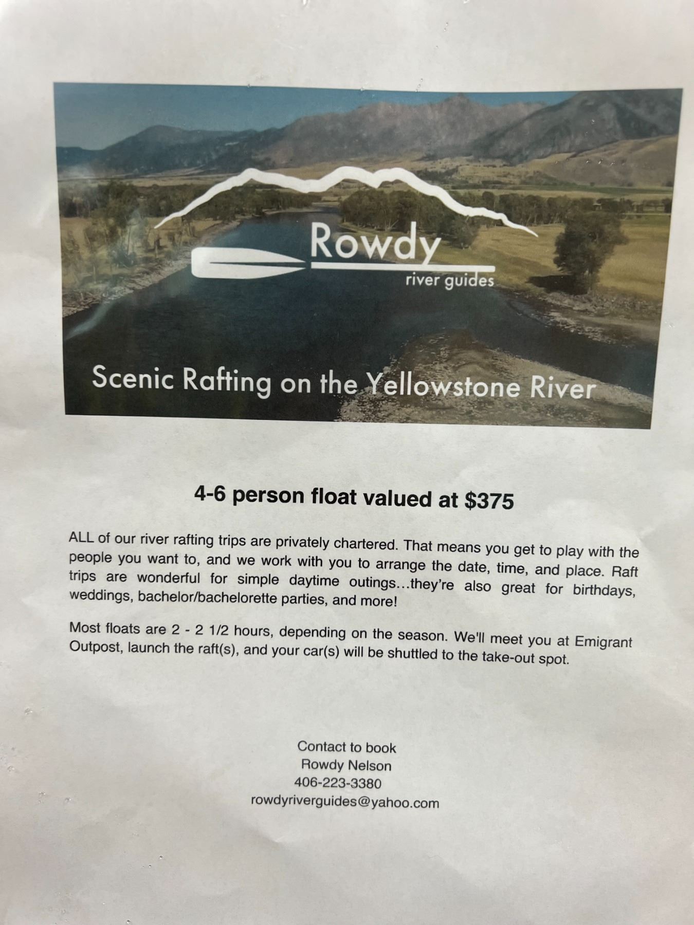 2-2.5 Hour Float Trip for 4-6 people ~ $375 Value