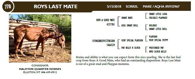 crop from Roys A Good Mate, who had an outstanding disposition. Roys Last Mate