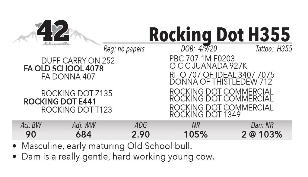 • Masculine, early maturing Old School bull.