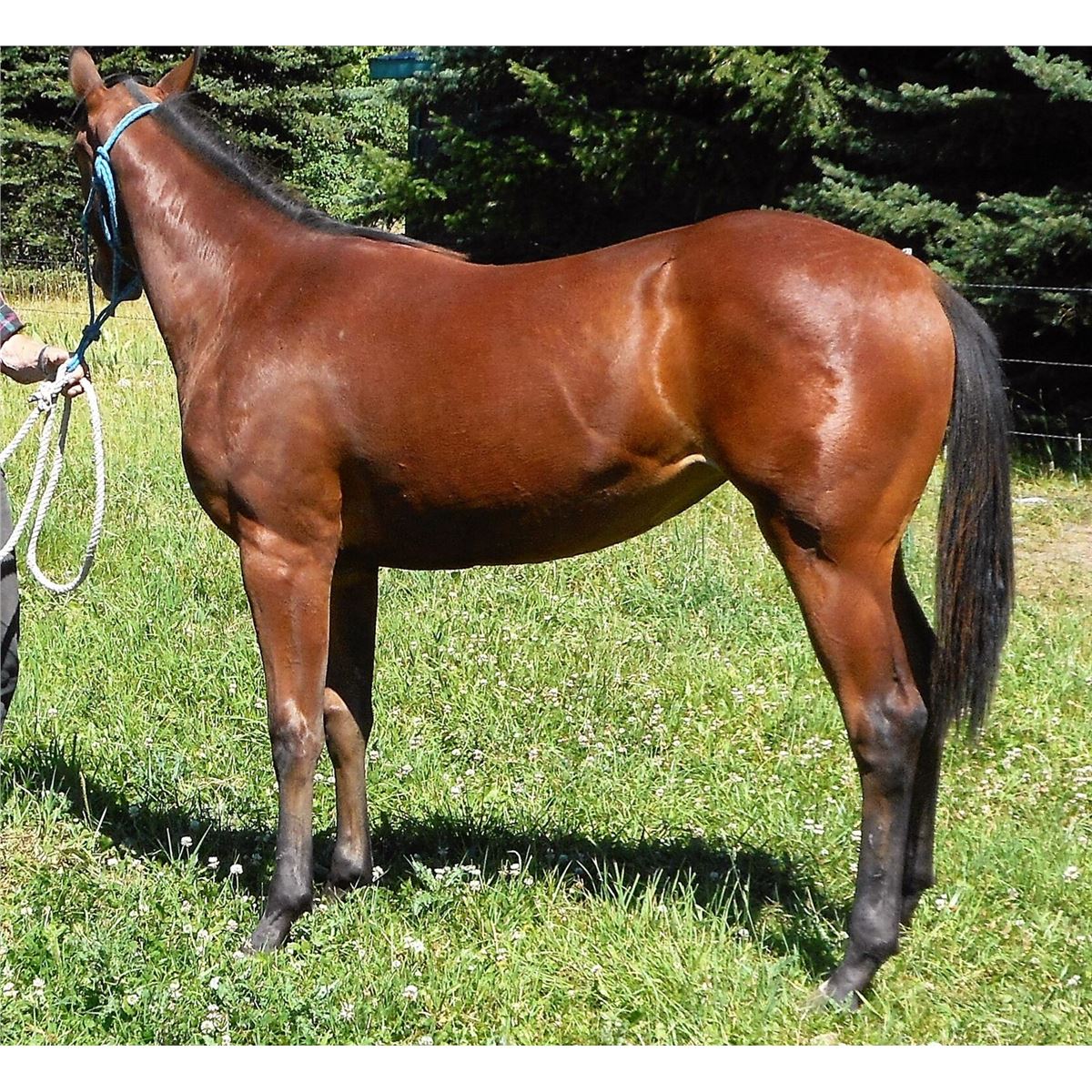 This pretty filly's pedigree is definitely a "hard to find". Back to Top Deck on the dam side, and all money earning on the sire side. She is a perfectly put together, stunning, dark bay. She is friendly, willing, level headed and sweet. She is also smooth, athletic and fast! Once again, a "hard to find" young horse.