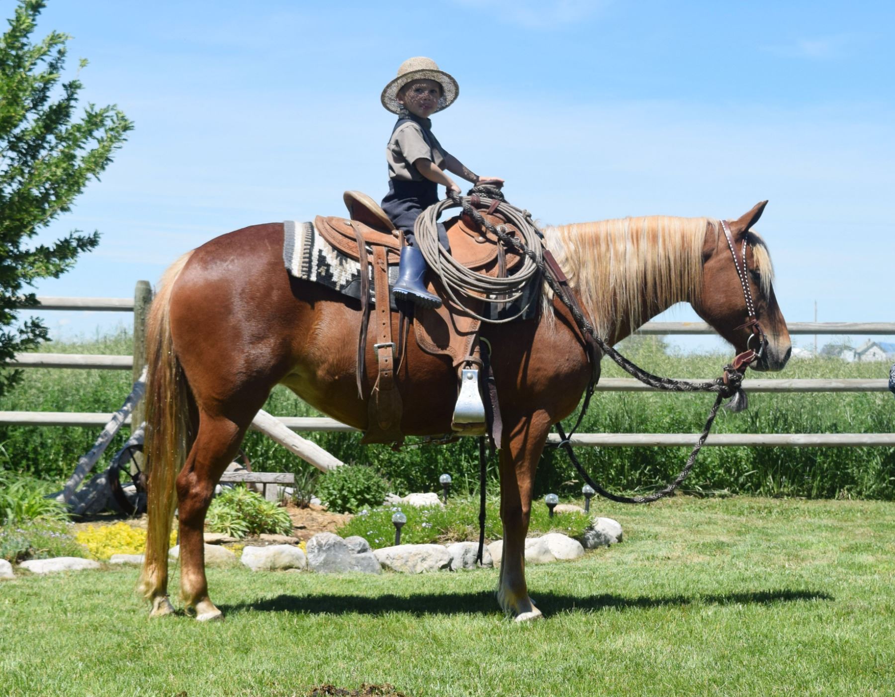 Take a look at this fancy little lady! Ruby is 5 year old pony mare that is broke to ride and drive. In front of a cart, she is simply stunning. She is elegant in her movement and will move out easily and confidently. She has been driven all over and is traffic and highway safe. She is easy to harness and drive. A great little step up pony, she is very comfortable to ride and will go anywhere she is asked...even bridleless! This super sweet little mare is in the prime of her life. She has been started right and is ready for the next chapter. For more information give Andrew a call at 406-374-2320.