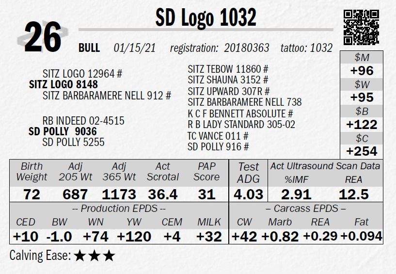 Free delivery of your bull purchases up to 500 miles from the sale site; beyond at cost.