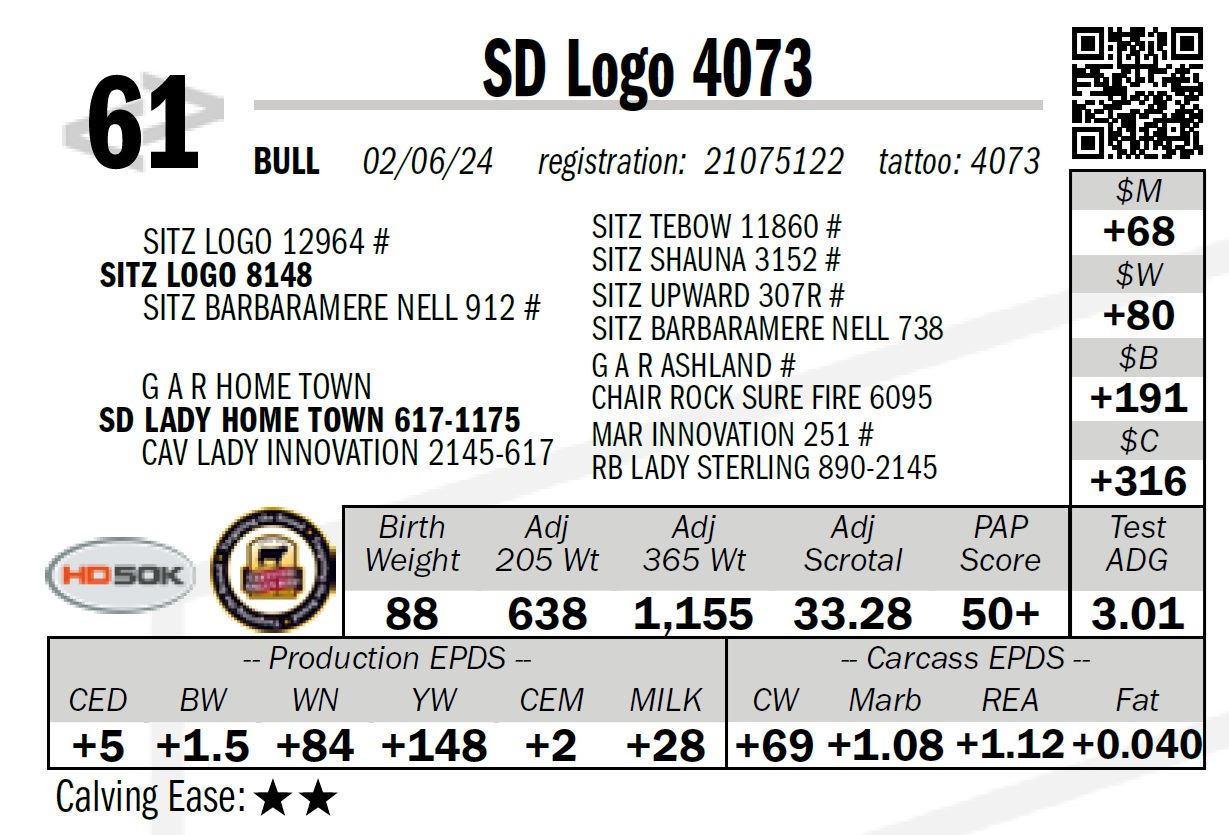 Free delivery of your bull purchases up to 500 miles from the sale site; beyond at cost.