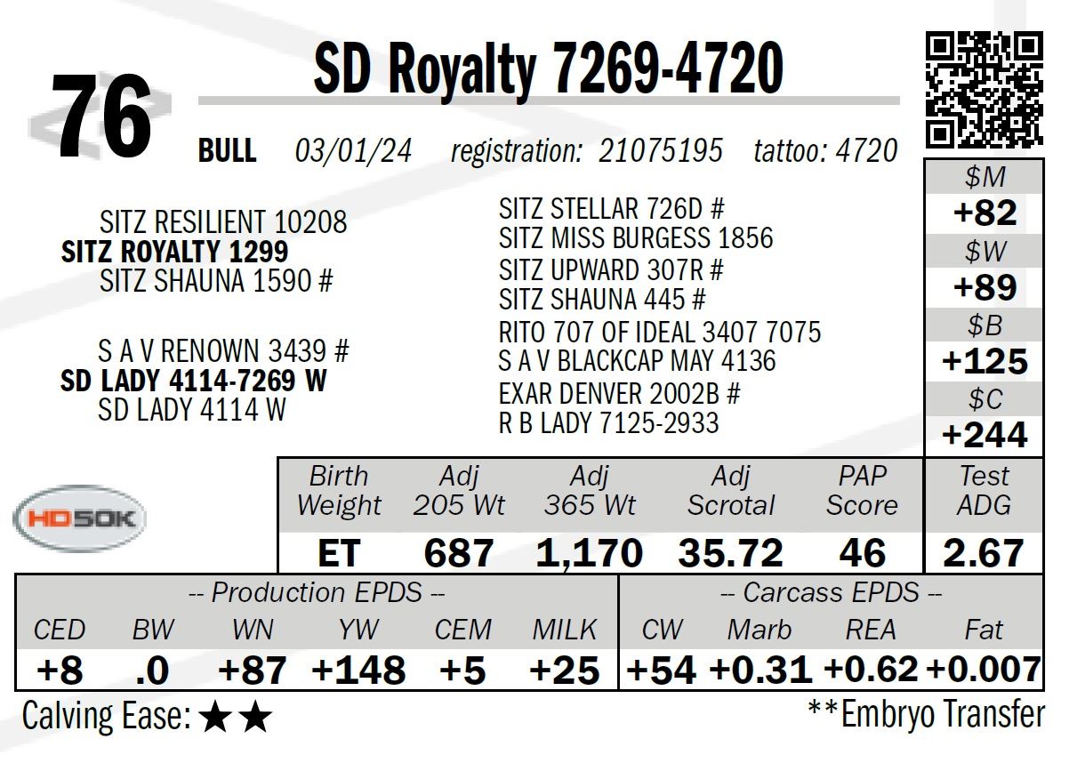 Free delivery of your bull purchases up to 500 miles from the sale site; beyond at cost.