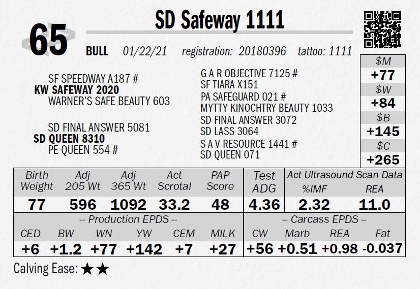 Free delivery of your bull purchases up to 500 miles from the sale site; beyond at cost.