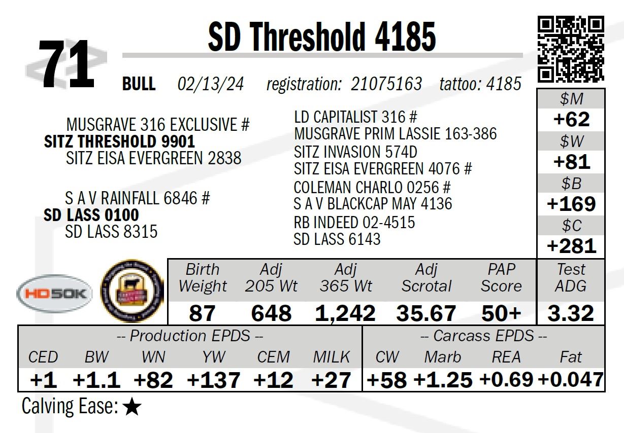 Free delivery of your bull purchases up to 500 miles from the sale site; beyond at cost.