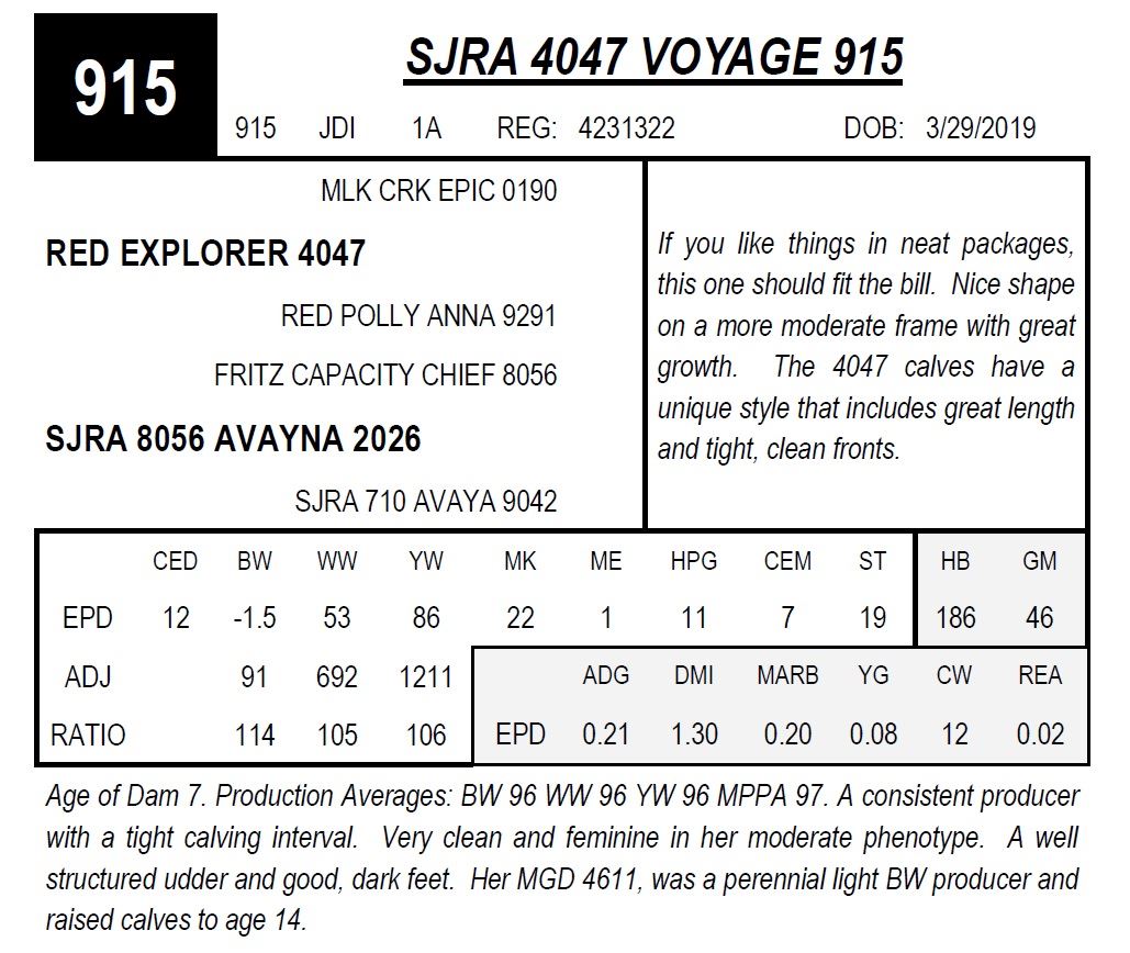 with a tight calving interval. Very clean and feminine in her moderate phenotype. A well