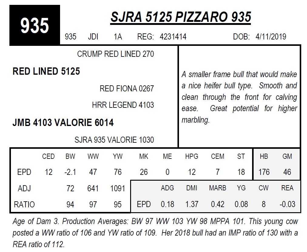 posted a WW ratio of 106 and YW ratio of 109. Her 2018 bull had an IMP ratio of 130 with a
