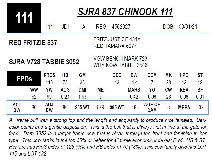 A +frame bull with a strong top and the length and angularity to produce nice females. Dark color points and a gentle disposition. This is the bull that is always first in line at the gate for feed. Dam 3052 is a larger frame cow that is clean through the front and feminine in her type. This cow ranks in the top 35% or better for all three economic indexes; ProS, HB & ST. Her sire has ProS index of 125 (9%) and HB index of 76 (13%). This cow family also has LOT 115 and LOT 132