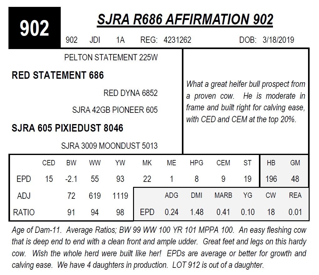 calving ease. We have 4 daughters in production. LOT 912 is out of a daughter.