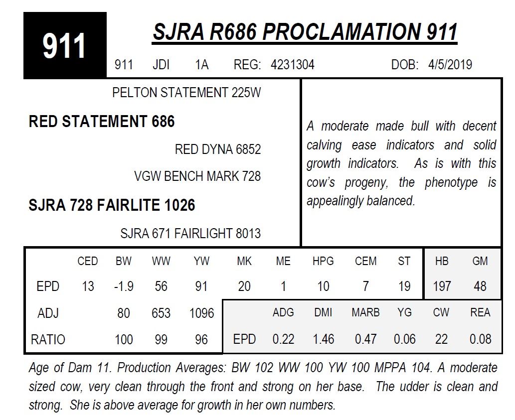 Age of Dam 11. Production Averages: BW 102 WW 100 YW 100 MPPA 104. A moderate