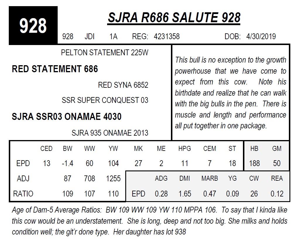Free delivery on Bulls only for the first 250 miles. All other deliveries at cost. There is a $75 per head rebate on Bulls taken sale