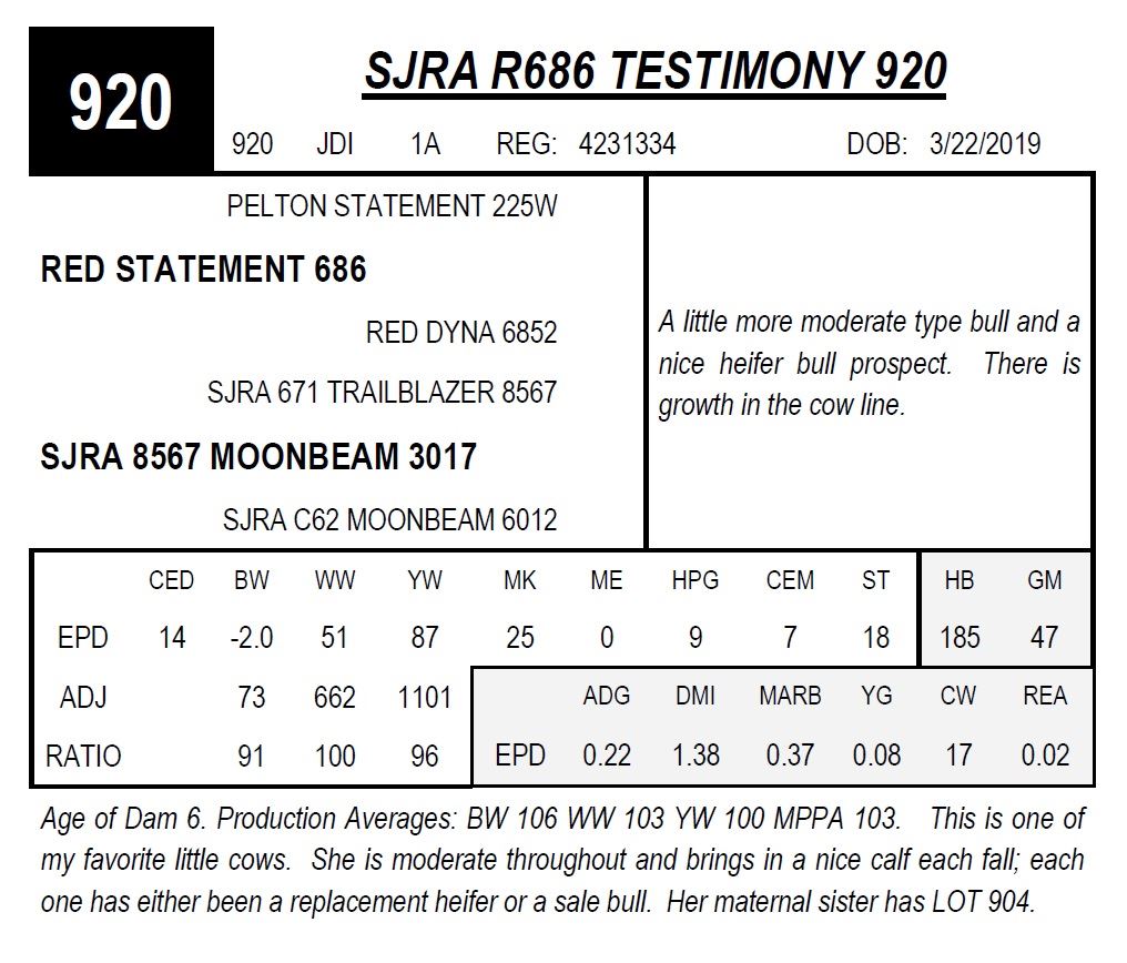 one has either been a replacement heifer or a sale bull. Her maternal sister has LOT 904.