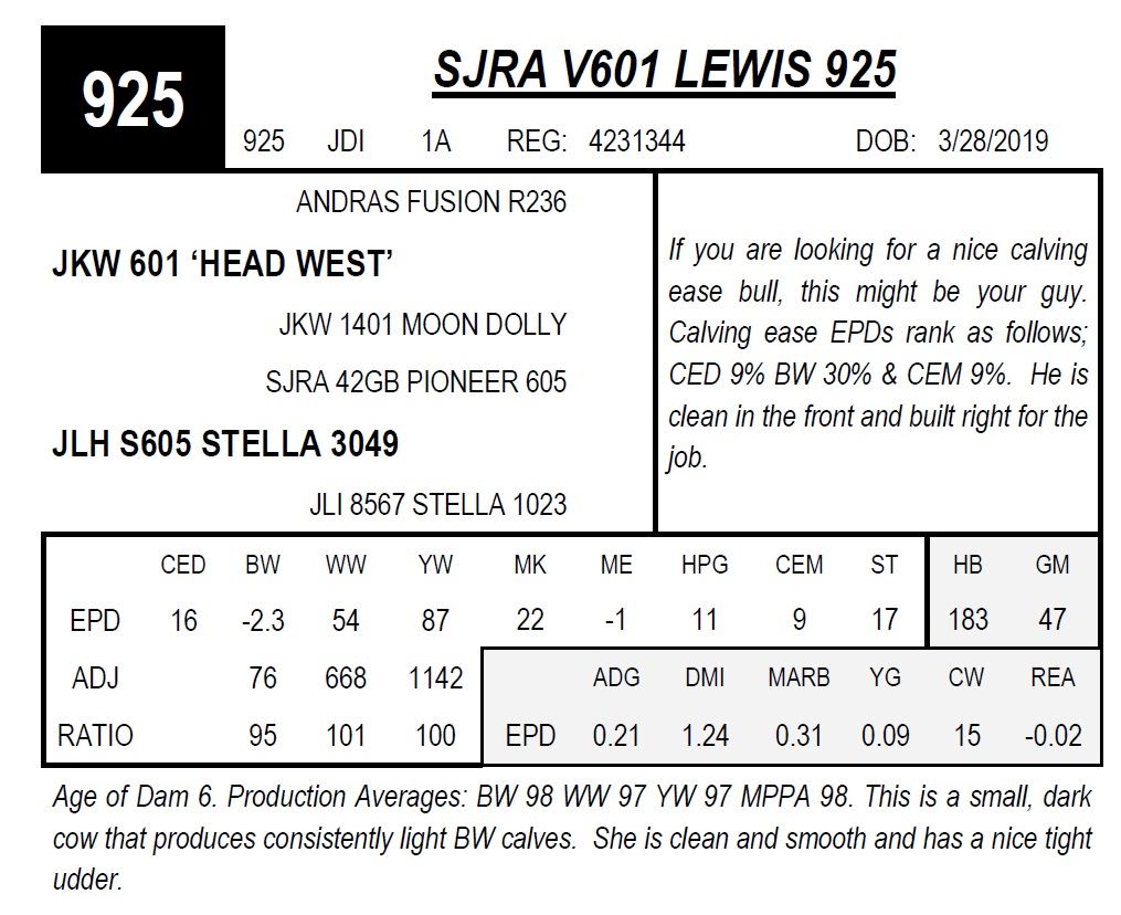 cow that produces consistently light BW calves. She is clean and smooth and has a nice tight