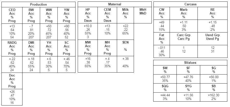 Interestingly, SPUR was not purchased for his high carcass traits which he has proven through both progeny ultrasound from 12 different groups, and actual steer progeny data for feed intake and carcass.