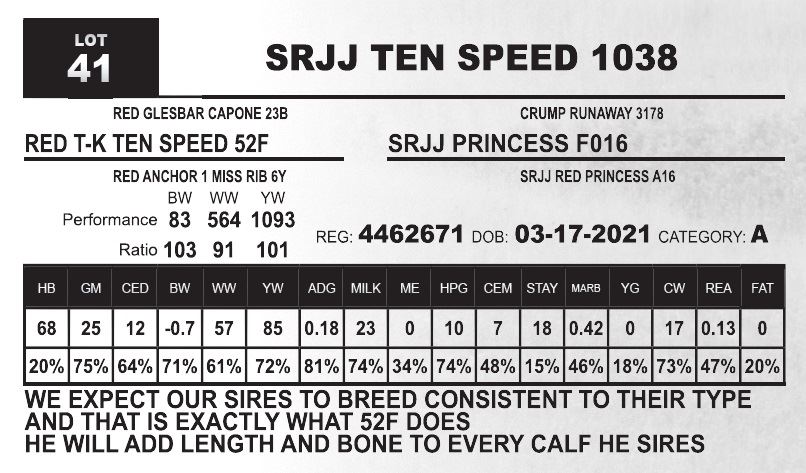 WE EXPECT OUR SIRES TO BREED CONSISTENT TO THEIR TYPE AND THAT IS EXACTLY WHAT 52F DOES